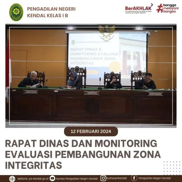February 13, 2024 In Berita Terkini 0 RAPAT DINAS DAN MONITORING EVALUASI PEMBANGUNAN ZONA INTEGRITAS