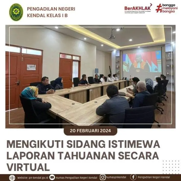 February 20, 2024 In Berita Terkini 0 MENGIKUTI SIDANG ISTIMEWA LAPORAN TAHUNAN MAHKAMAH AGUNG RI TAHUN 2023 SECARA VIRTUAL