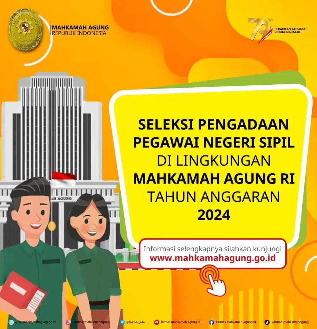 Pembukaan CASN Mahkamah Agung Republik Indonesia sudah berlangsung dari tanggal 20 Agustus-6 September 2024, segera daftarkan diri anda dan jadi bagian keluarga besar Mahkamah Agung Republik Indonesia