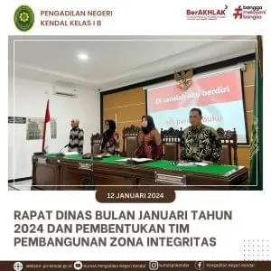 RAPAT DINAS BULAN JANUARI TAHUN 2024 DAN PEMBENTUKAN TIM PEMBANGUNAN ZONA INTEGRITAS PENGADILAN NEGERI KENDAL KELAS I B
