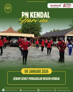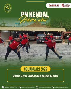 Pada Hari Jum’at tanggal 09 Januari 2026 dilaksanakan kegiatan Senam Sehat di Halaman Kantor Pengadilan Negeri Kendal.
